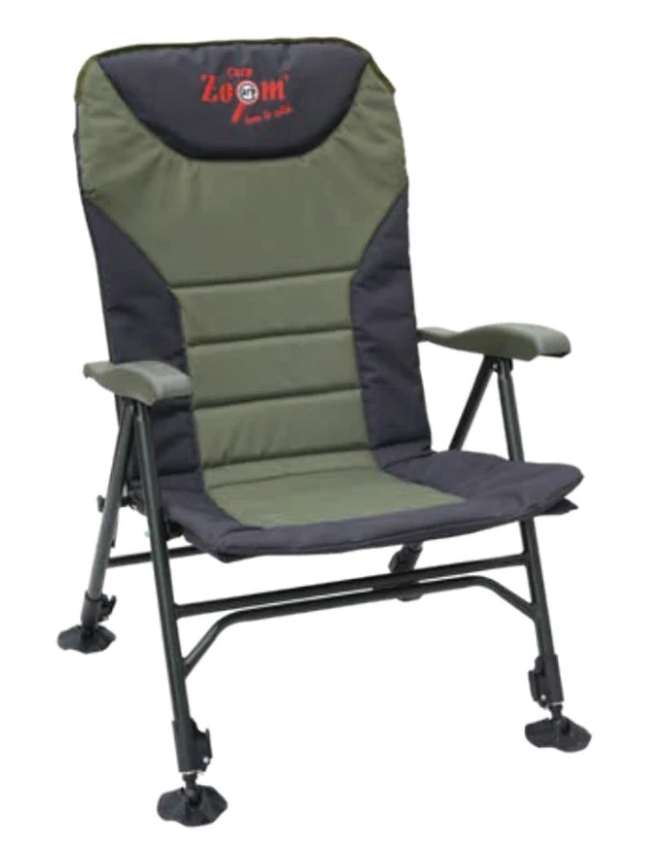 Deze Carp Zoom Recliner Comfort Armchair is een comfortabele sessie stoel met verstelbare rugleuning en armleuningen. Ook zijn de 4 poten individueel in hoogte verstelbaar van 42cm tot 98cm. Samen met de royaal gewatteerde zitting en rugleuning zorgt dit alles voor optimaal zitcomfort aan de waterkant. Verder hebben de poten draaibare moddervoeten die voorkomen dat je op zachtere ondergronden wegzakt. De stoel heeft een extra hoge rugleuning, is lichtgewicht en compact in transport. Een hele nette sessie stoel, gemaakt van stevige componenten voor een lange levensduur!