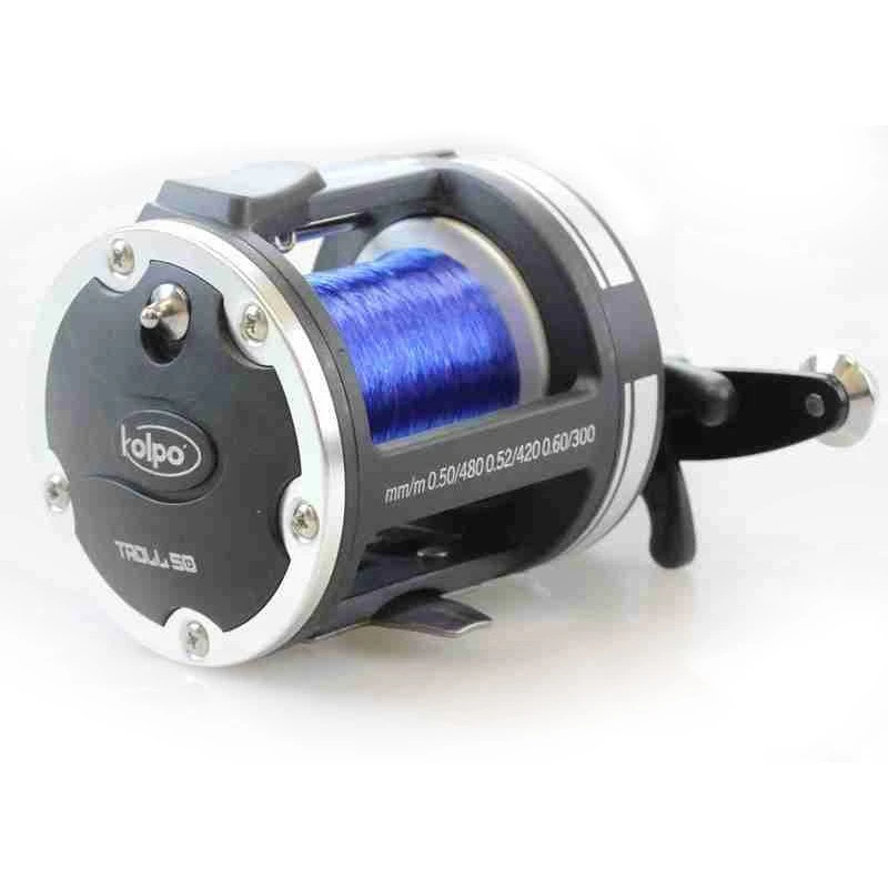 Deze Kolpo Troll is een uiterst gebruiksvriendelijk reel met een hoge betrouwbaarheid, ontwikkeld voor het trollend vissen op zee en ideaal voor zowel het slepend vissen als het driftend vissen met kunstaas en natuurlijk aas. De reel is voorzien van lijngeleider voor een comfortabele en correcte afvoer van de lijn. Beschikbaar in twee maten (30 en 50 lbs) en opgespoeld met hoogwaardige nylon lijn, klaar voor gebruik. Let op: slinger is rechts geplaatst!
