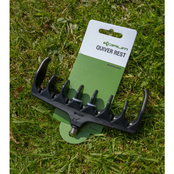 De Quiver Rest van Korum is een zeer handige hengelsteun. Deze hengelsteun is perfect voor het vissen op commercials, met de method feeder of andere witvistechnieken. De steun heeft zeven posities waar je de hengel in kan leggen, zo pas je gemakkelijk de spanning van de top aan. Daarnaast is de steun voorzien van een gleuf voor de lijn. De hoge randen zorgen ervoor dat je hengel niet van de steun wordt getrokken. Tevens is het ook mogelijk om met meerdere hengels tegelijk te vissen op deze steun.