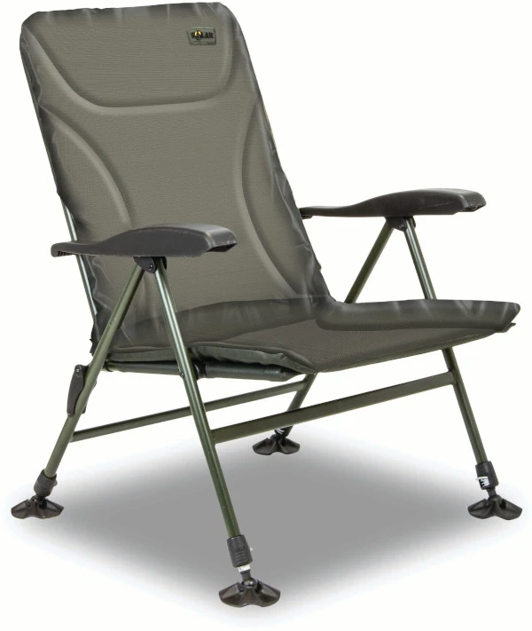De Solar Undercover Green Recliner Chair is een uiterst luxe, comfortabele stoel waarvan de modderpoten, rug- én armleuningen geheel verstelbaar zijn. Het sterke stalen frame met daarboven het zijdezachte 600D PU-backed matras zorgen voor een relaxte en zorgeloze sessie, waar de uiterst veelzijdig verstelbare armleuningen maximaal comfort kan garanderen in wel zeven verschillende posities. Maak iedere sessie extra relaxed en geniet op een optimaal ontspannen manier van het water en de natuur om je heen!