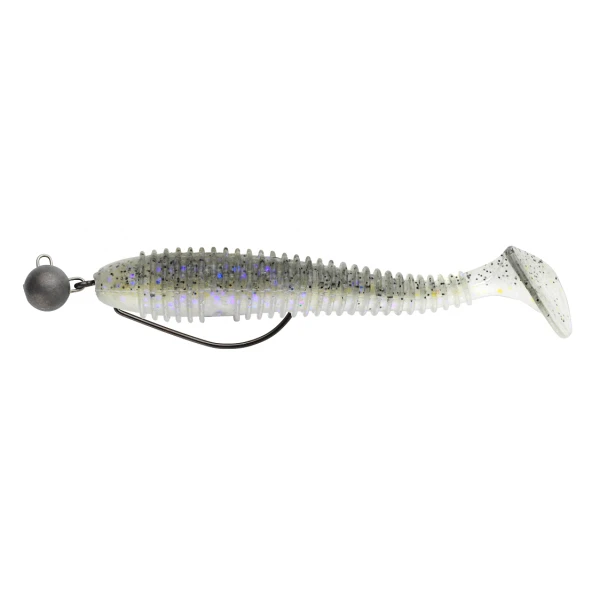 Deze visklare versie van de Swimy’s Galfion Fat Shad maakt het leven gemakkelijker voor beginnende vissers of voor iedereen die geen tijd wil verliezen aan de waterkant. De Cheburashka-rig in combinatie met een Texas haak is perfect voor het vissen tussen obstakels, terwijl het risico op vastlopen aanzienlijk wordt beperkt. De Galfion Fat Shad is uitgerust met een grote staart en levert sterke trillingen, zelfs bij lage snelheden. Ook wekt zijn geprofileerde body de indruk van een grote prooi. Verder is er een extra geurstof toegevoegd om het geheel nog aantrekkelijker te maken!
