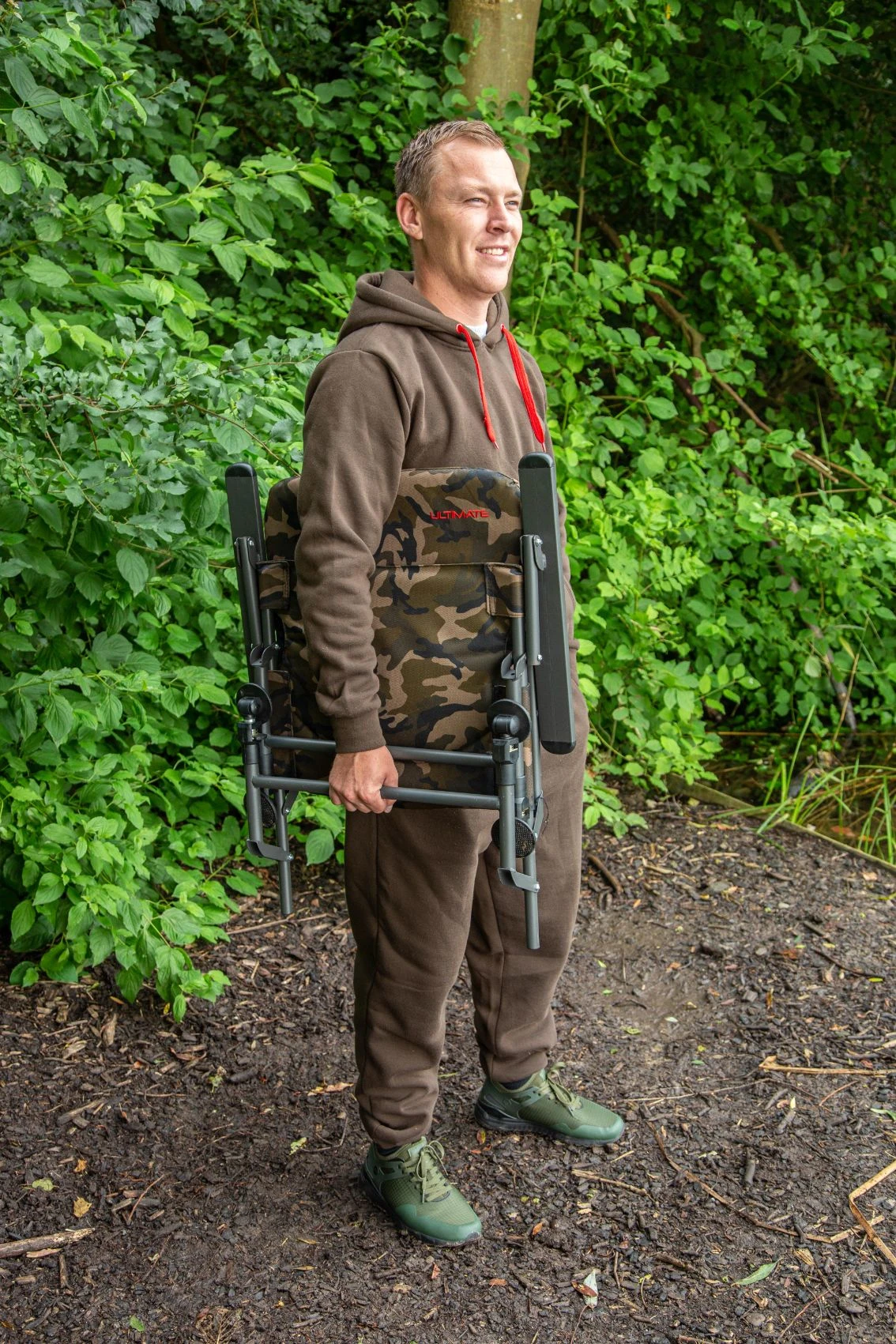 Deze Ultimate Comfort Chair is perfect voor alle vissers die er graag relaxt bij zitten aan de waterkant.