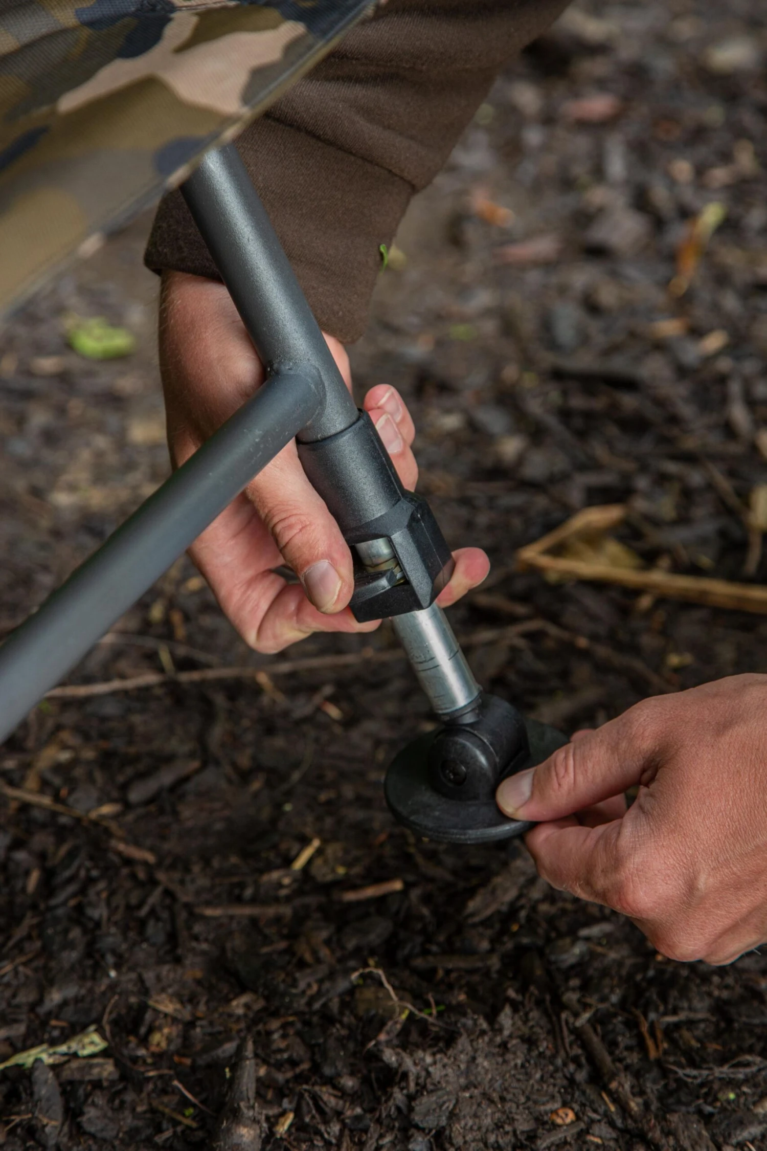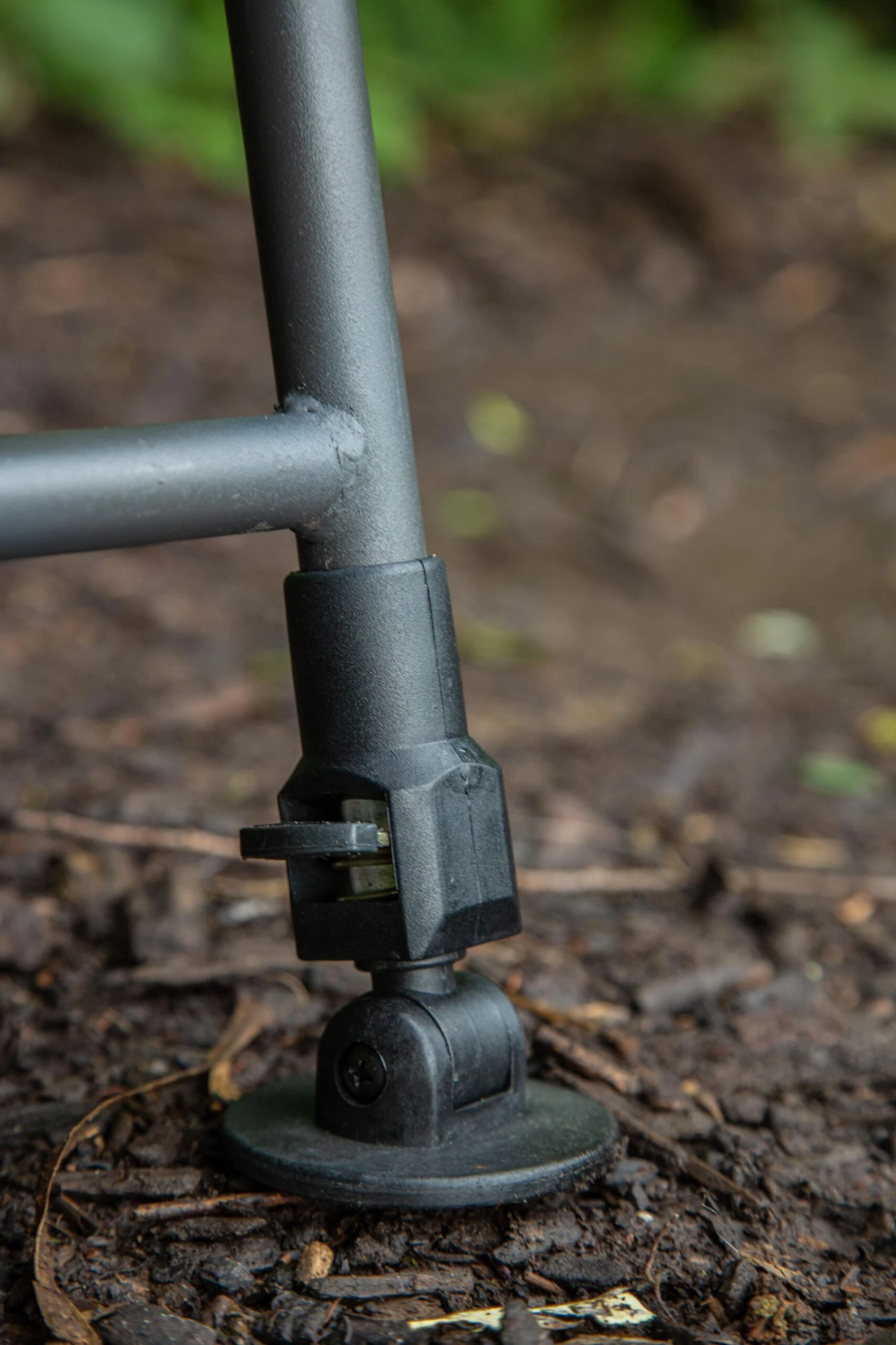 De stoel is licht van gewicht maar toch zeer sterk door het aluminium frame. De rugleuning en poten zijn makkelijk in te klappen zodat er een minimum aan ruimte word ingenomen en de verstelbare poten en grote modderpoten maken deze stoel geschikt voor elke waterkant!