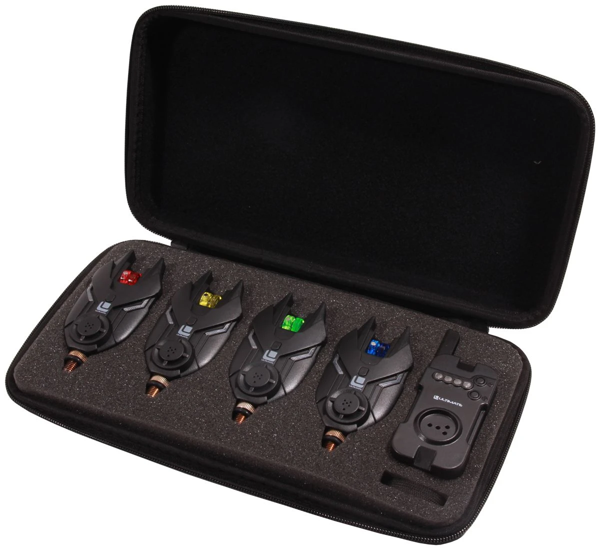 Deze Ultimate E-tension Bite Alarm set bestaat uit 4 basic beetmelders met een bijpassende ontvanger met een bereik van maar liefst 200 meter! De set is 100% waterdicht en beschikt over een memory functie. Ook is het volume van de beetmelders instelbaar. De E-tension Bite Alarm set is overzichtelijk verpakt in een luxe hardcase voor veilige opslag en transport.