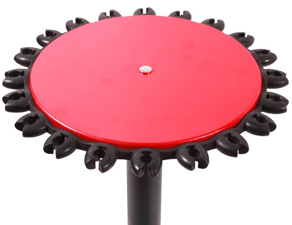 Dit ronde hengelrek van Ultimate is stevig en biedt plaats aan maximaal 20 hengels. Rubberen clips houden de hengels op hun plaats en beschermen de hengels tegen krassen en andere beschadigingen. Dankzij het open, ronde ontwerp kun je je hengels veilig en overzichtelijk opbergen. De ruime bodemplaat zorgt voor stabiliteit en het rek is zeer eenvoudig te monteren. Perfect voor in de mancave, garage of andere opslagruimte!